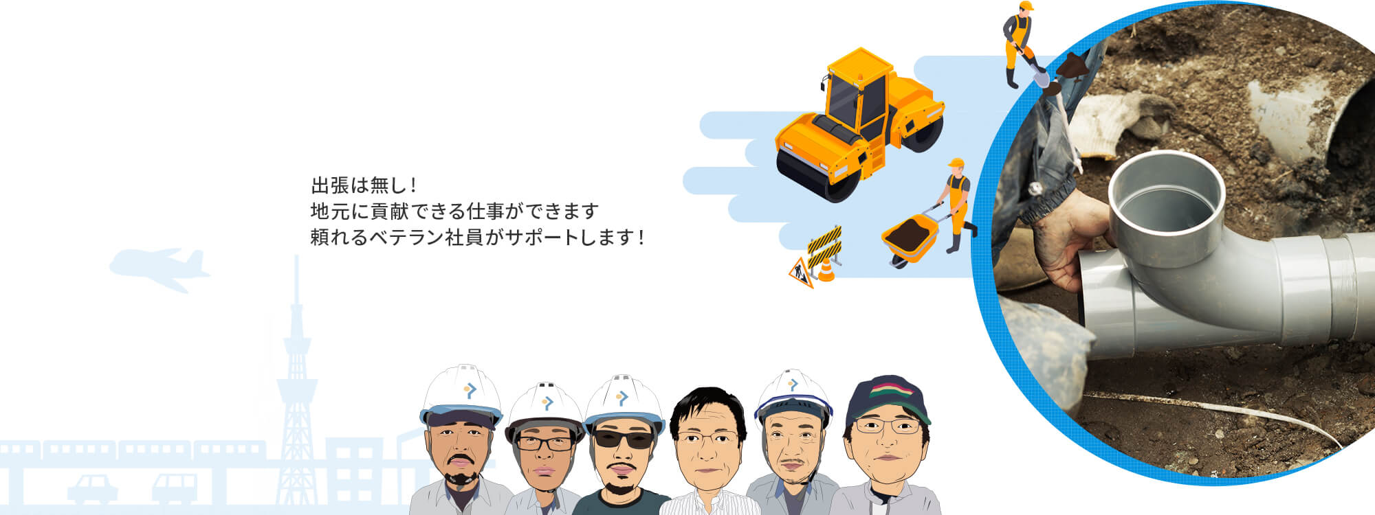 | 建設業務許可の種類 | 管工事業 水道施設工事業 土木工事業 ほ装工事業 とび・土工工事業 |
